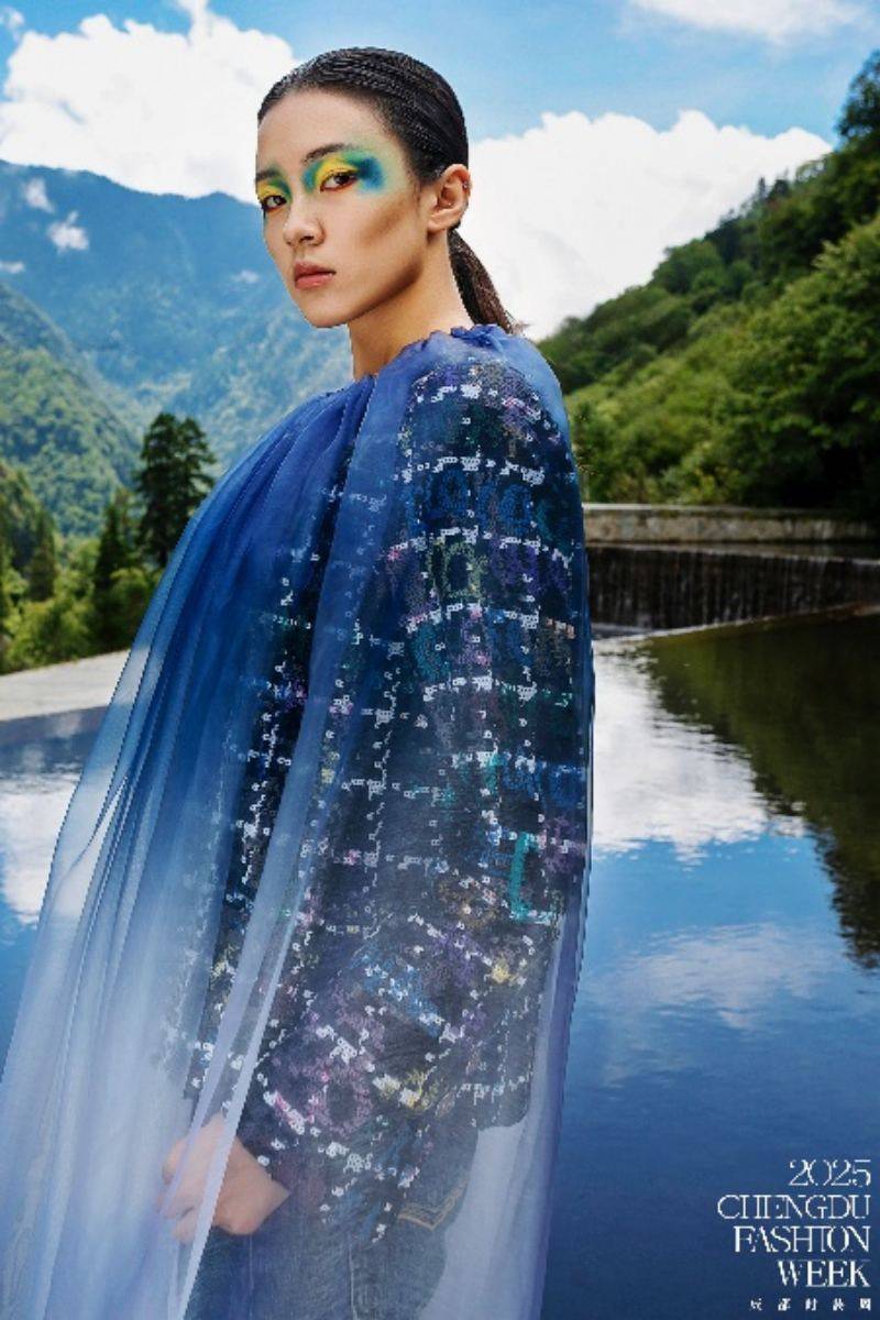 在被誉为"羌绣之乡"的汶川,阿尔沟的云海、羌寨的碉楼、高山杜鹃的绚烂,皆化作设计师的灵感源泉。宣传片中,模特行走于汶川山水间,衣摆拂过青稞田,羌绣纹样与雪山轮廓交相辉映。这种"在地性"创作让时尚不再悬浮,而是扎根于土地的温度与记忆。