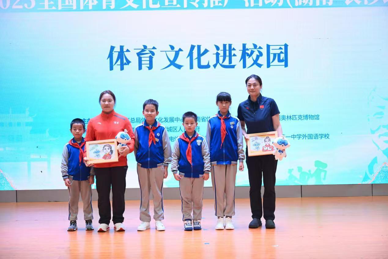 体育文化不仅洋溢在赛场间,还沉浸式走入校园里。9月26日下午,2025全国体育文化宣传推广活动(湖南・长沙站)体育文化进校园活动,在望城一中外国语学校(莲湖校区)温情启幕。北京2008年奥运会自由式摔跤女子72公斤级冠军王娇、里约2016年奥运会女子举重69公斤级冠军向艳梅走进学校,向孩子们传递体育的精神力量与浓浓的家国情怀。活动通过欢迎仪式、体育六艺展览、火炬传递、奥运冠军分享会等环节,为全校师生打造一场沉浸式体育文化盛宴,让拼搏精神与爱国情怀在校园里激扬。